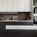 Rendete il vostro soggiorno ancora più confortevole grazie alla cucina completamente attrezzata di quest'appartamento, fornita di un microonde, un frigo e un piano cottura per soddisfare ogni vostra esigenza. La fermata dell'autobus Atzalyno st è a pochi minuti a piedi da Scandinavian inspired design, di 38 m^2.